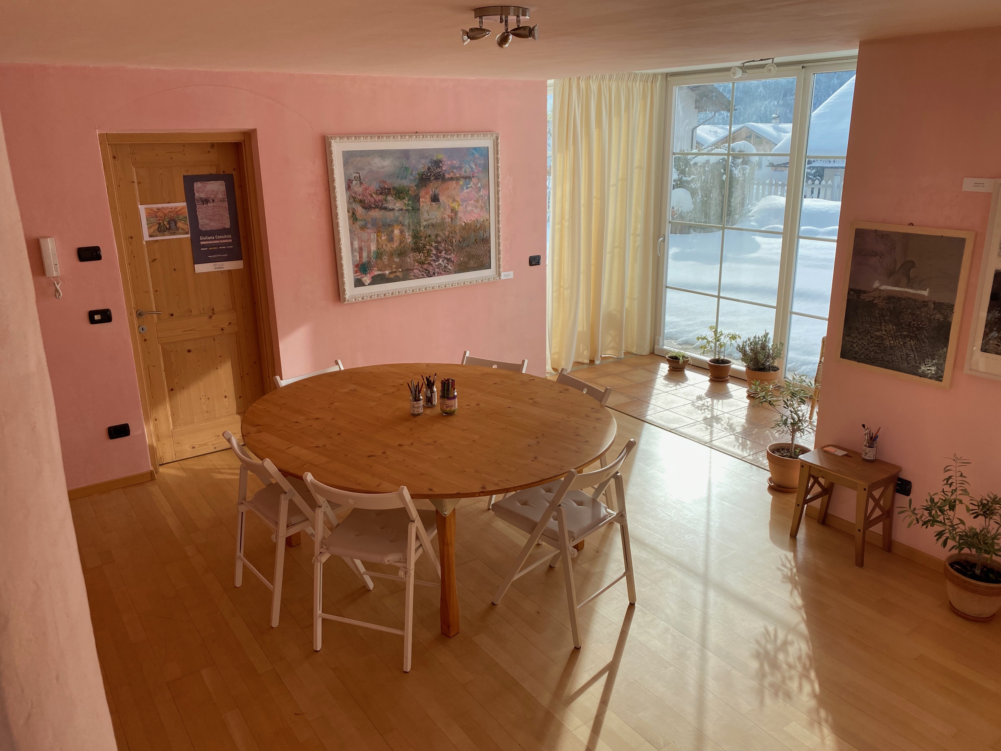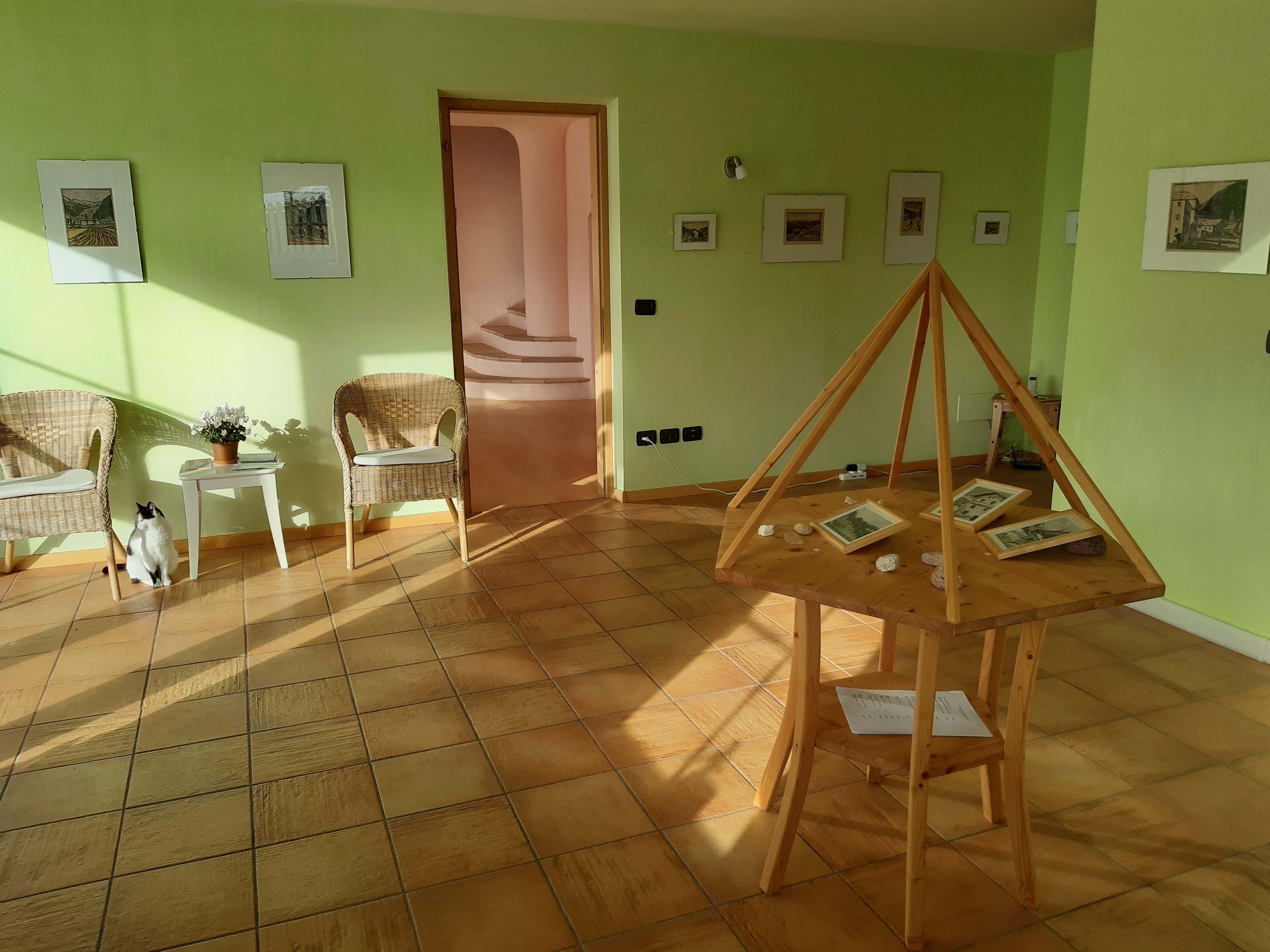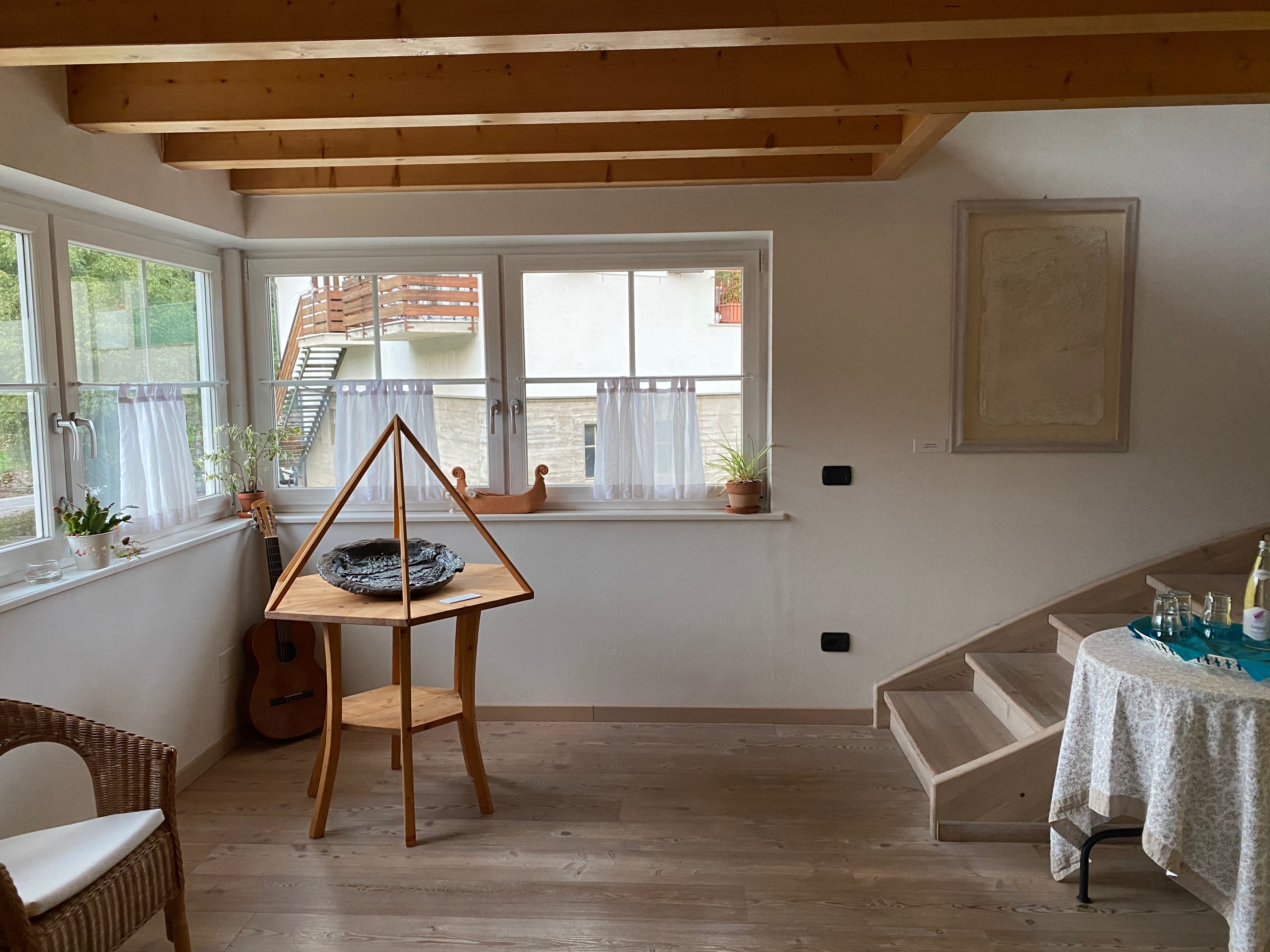 L’armonia in una casa si crea dall’atmosfera, ma anche dalla concezione dell’arredamento e dalle forme architettoniche. Questa casa è stata concepita e costruita dal geometra cavalesano Giampiero Vinante a partire dall’anno 2004. Quando l’abbiamo scoperta, è stato un colpo di fulmine: le sue dimensioni ci sembravano perfettamente armoniose. L’esposizione è a est, sud e ovest. La luce scalda ed illumina i locali e accarezza le sue forme tutta la giornata. Avevamo l’idea di ottimizzare questo bell’ambiente con la nostra idea di un’architettura armonizzante, campo di interesse e ricerca di Klaus per molti anni.