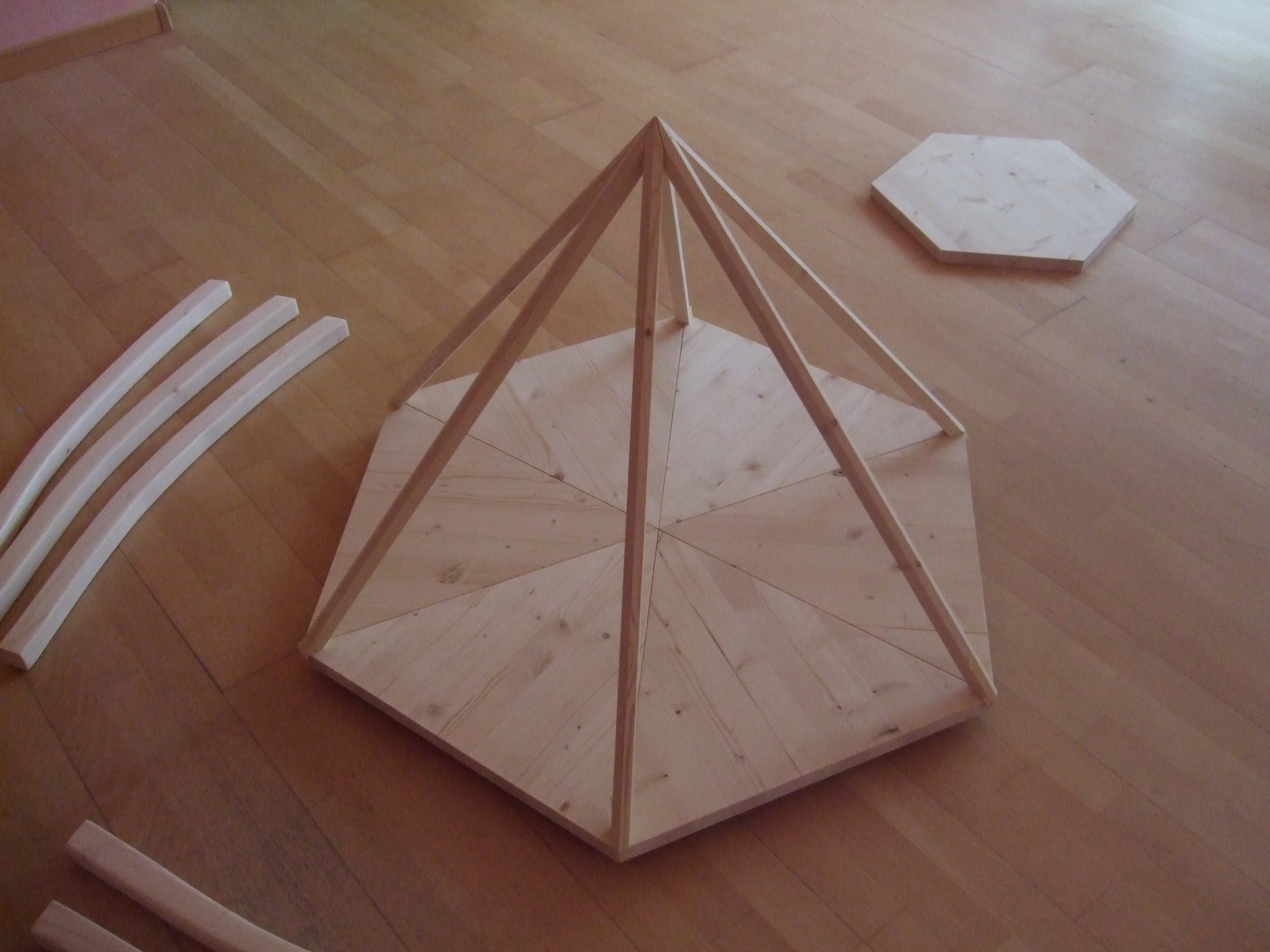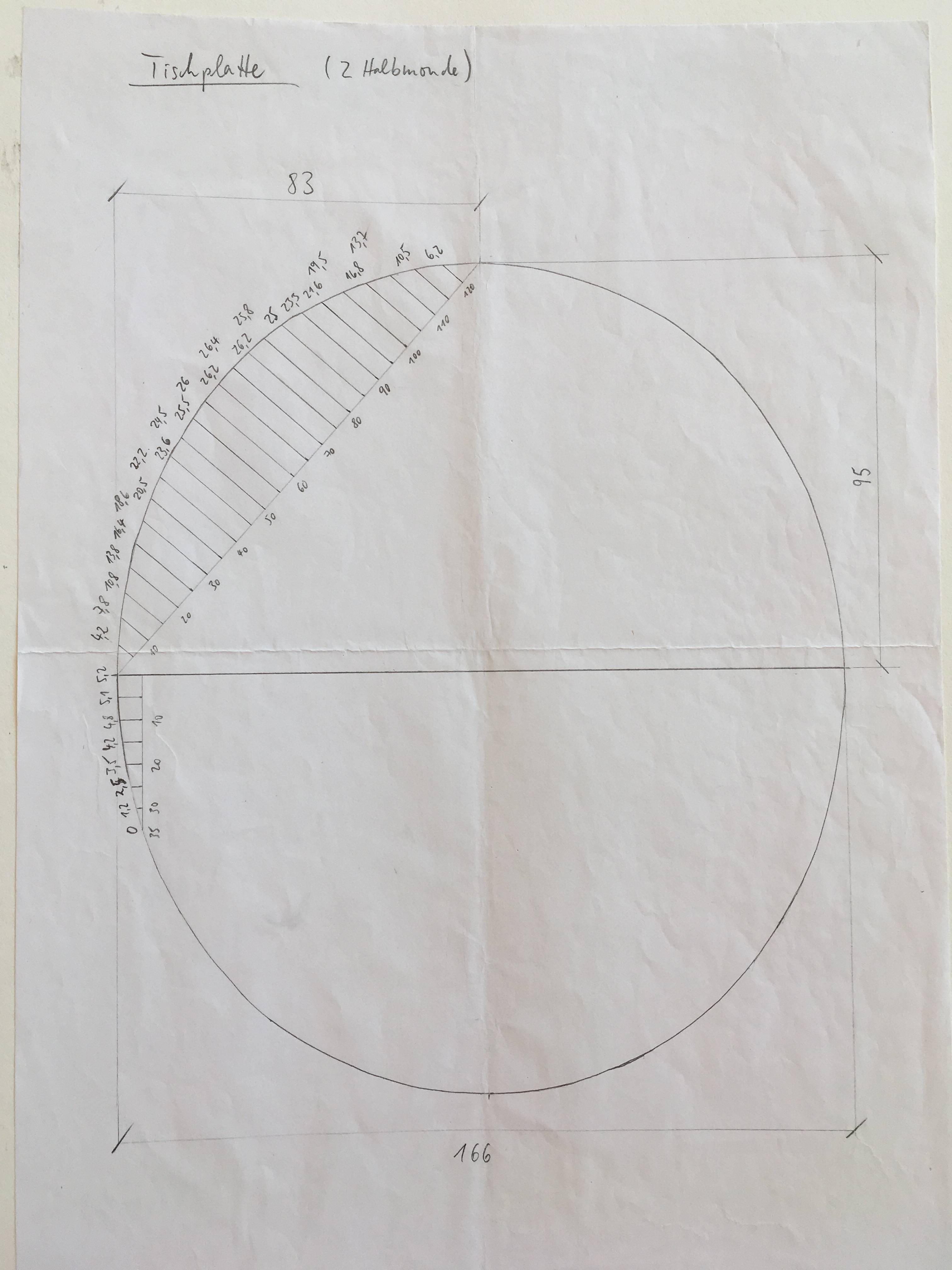 Inoltre, immaginando un cono alzandosi sopra la pianta della casa, si apre da questi cerchi uno spettro di forme geometriche sempre nuove (sezione conica), come ad esempio la forma ovale del tavolone per creare nella stanza d’arte.