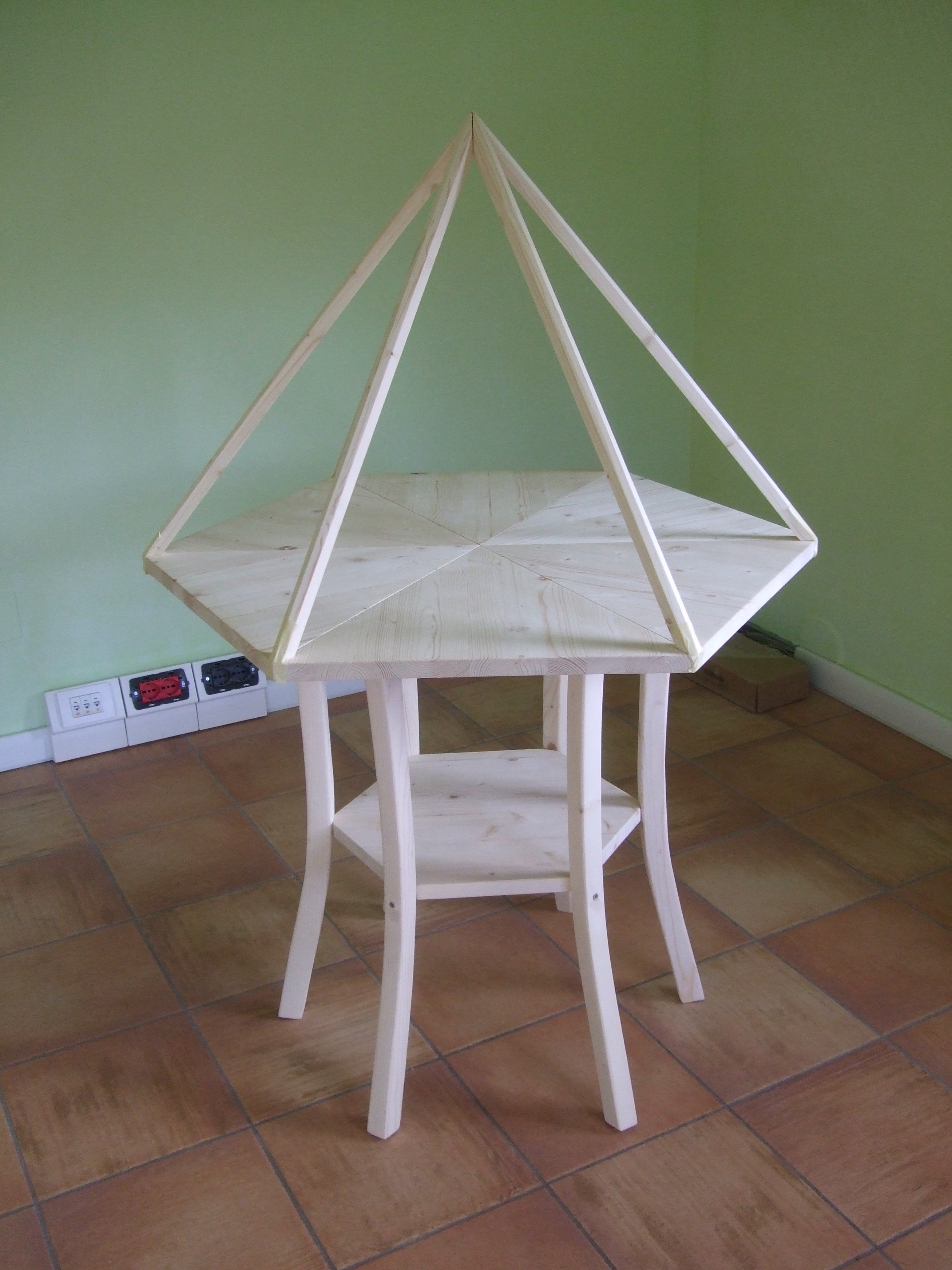 Il nostro “tavolo diamante” era concepito da Klaus nel 2016, e ci serve a tutt’oggi per le nostre mostre d’arte…